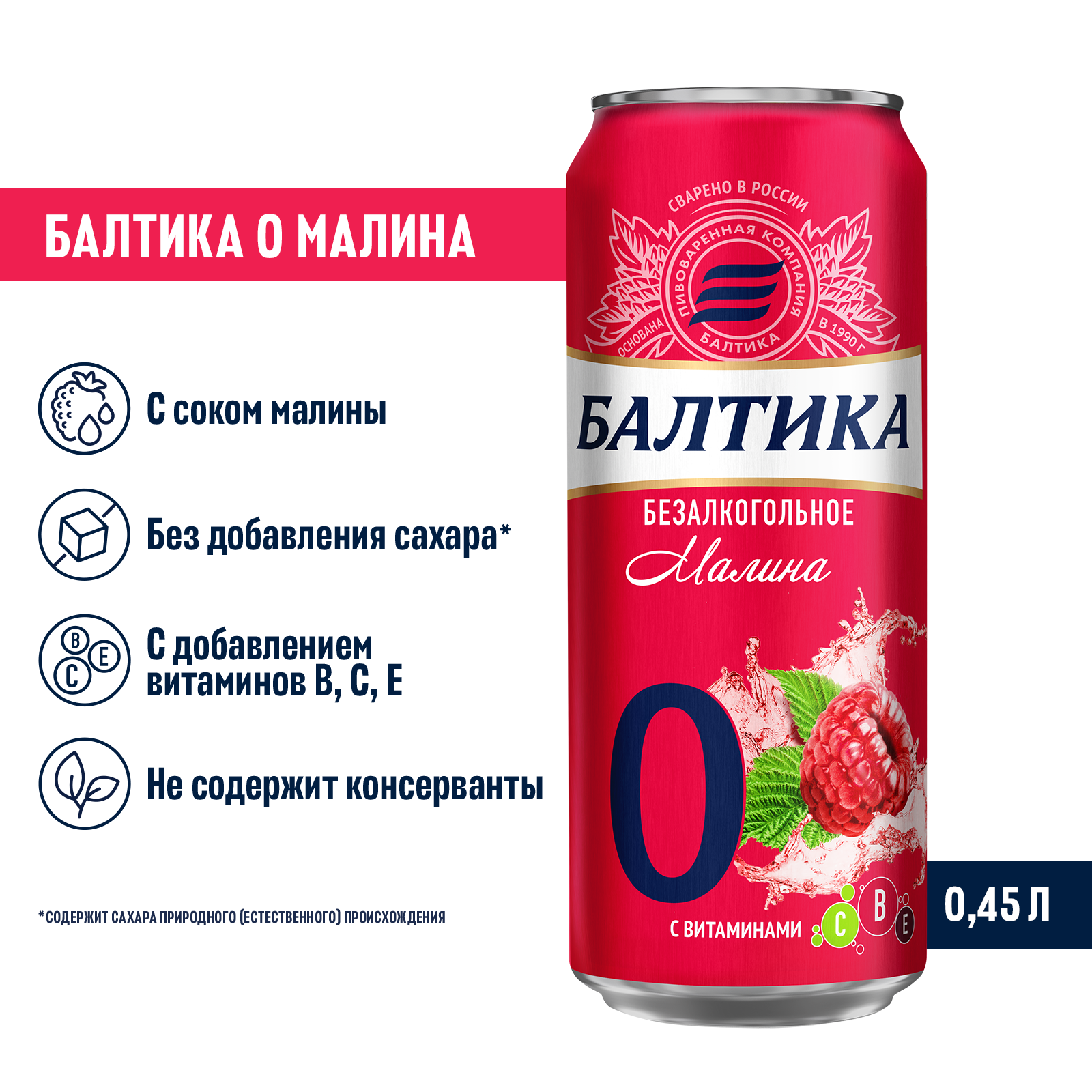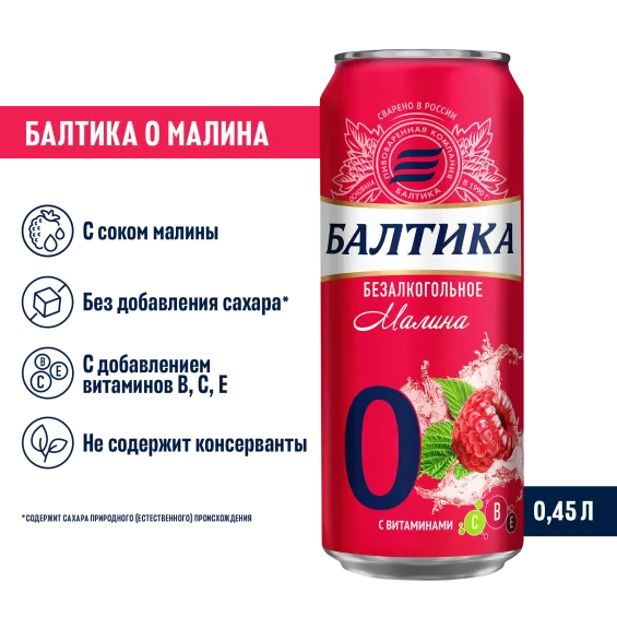 "Балтика №0 Безалкогольное Малина Банка 0,45 л – освежающий вкус малины без алкоголя! Балтика №0