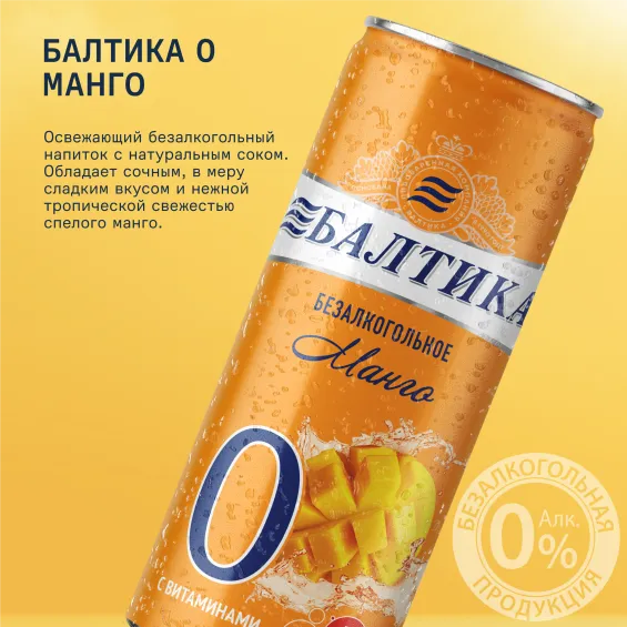 вода питьевая очищенная, солод пивоваренный ячменный светлый, регулятор кислотности лимонная кислота, солодовый экстракт, ароматизатор пищевой «Манго» (регулятор кислотности уксусная кислота, антиокислитель аскорбиновая кислота), растительный экстракт (экстракт сафлора), сок черной моркови концентрированный, концентрированный сок из манго осветленный, витаминный премикс (витамин Е, витамин В1, витамин В2, витамин В6, ниацин, фолиевая кислота, пантотеновая кислота, биотин, витамин В12, витамин С), хмелепродукты.