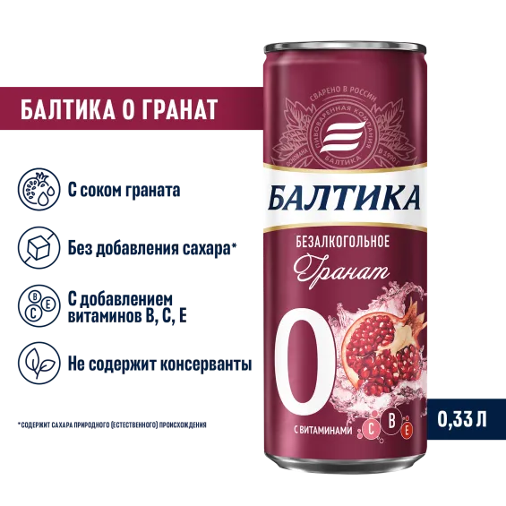 вода питьевая, солод пивоваренный ячменный светлый, регулятор кислотности лимонная кислота, сок чёрной моркови концентрированный, ароматизаторы, витаминный премикс (витамин Е, витамин В1, витамин В2, витамин В6, ниацин, фолиевая кислота, пантотеновая кислота, биотин, витамин В12, витамин С), сок концентрированный из граната, хмелепродукты