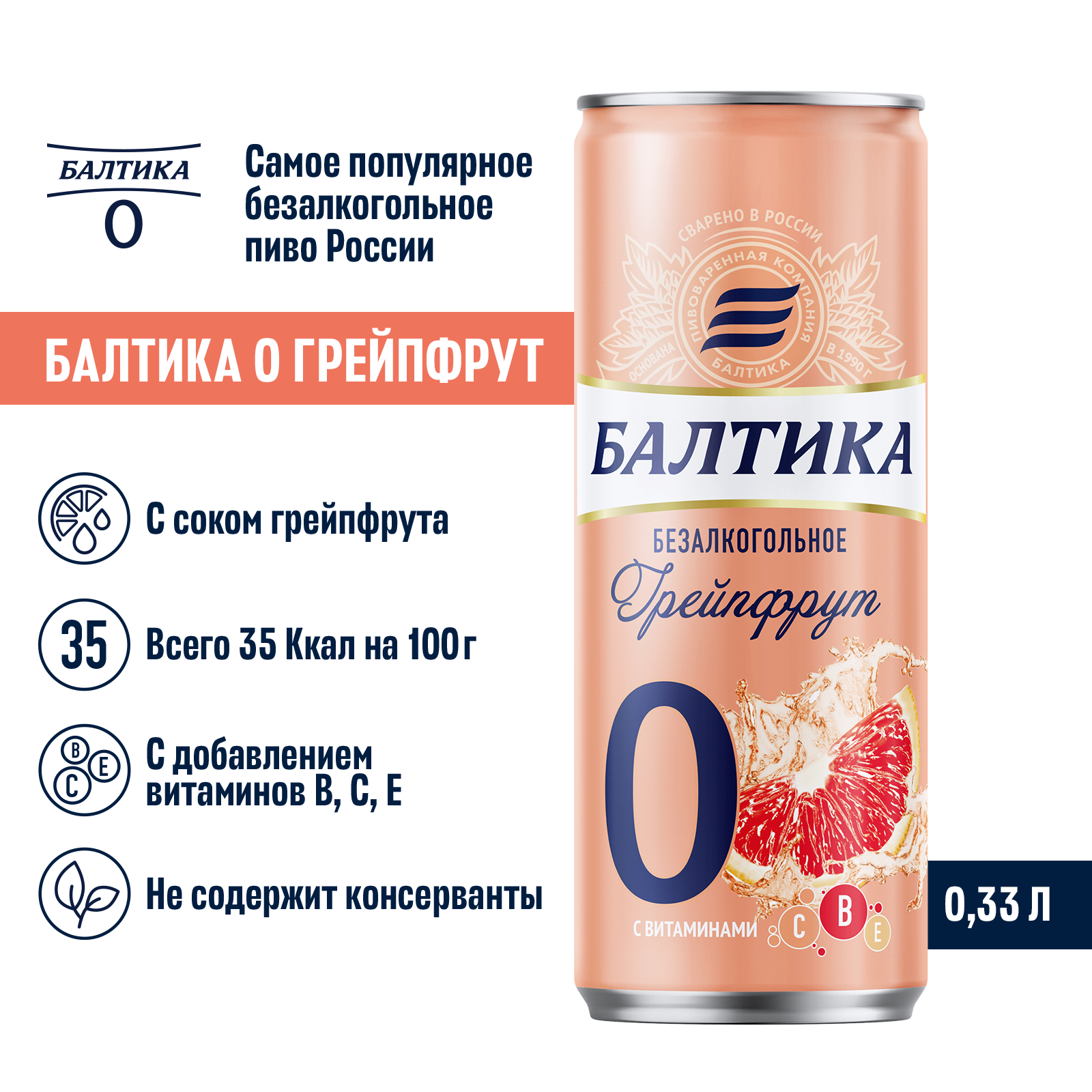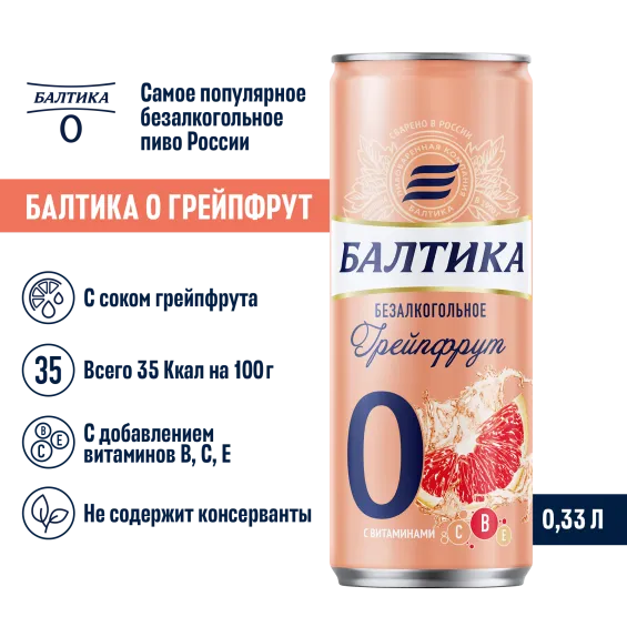вода питьевая очищенная, солод пивоваренный ячменный светлый, ячмень пивоваренный, сахар, регулятор кислотности лимонная кислота, ароматизатор пищевой "грейпфрут", витаминный премикс (витамин Е, витамин B1, витамин B2, витамин B6, ниацин, фолиевая кислота, пантотеновая кислота, биотин, витамин B12, витамин C), сок грейпфрутовый концентрированный, хмелепродукты