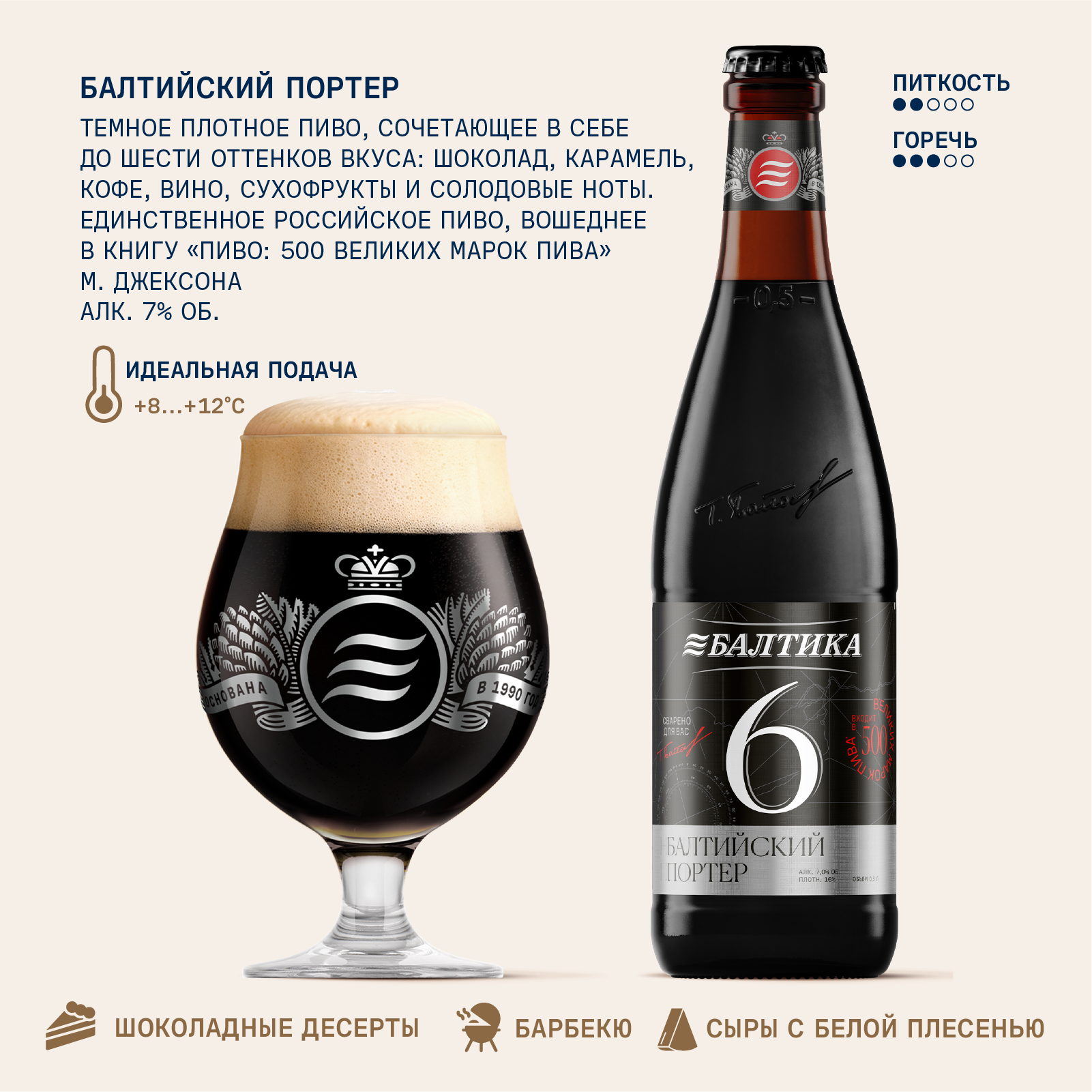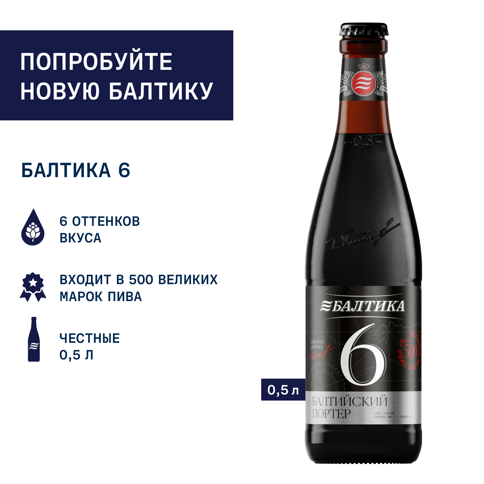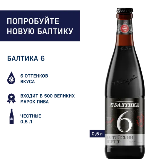 Балтика 6 - балтийский портер с изысканным и сложным ароматом. В насыщенном вкусе переплетаются 6