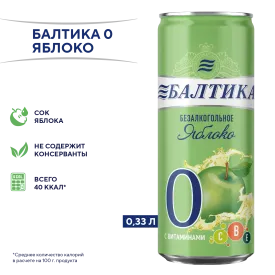 Балтика №0 Безалкогольное Яблоко Банка 0,33