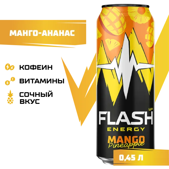 вода питьевая очищенная, сахар, регуляторы кислотности: кислота лимонная и цитрат натрия, ароматизатор пищевой «Манго» (стабилизаторы: E414, E445, антиокислители: E306, E304, красители: E160e, E160a), таурин, ароматизатор пищевой «Ананас» (антиокислитель E307), ароматизатор пищевой натуральный «Тип манго», кофеин, премикс витаминный (ниацин, пантотеновая кислота, витамин B6, фолиевая кислота, биотин, витамин B12), антиокислитель – аскорбиновая кислота, консервант – бензоат натрия.