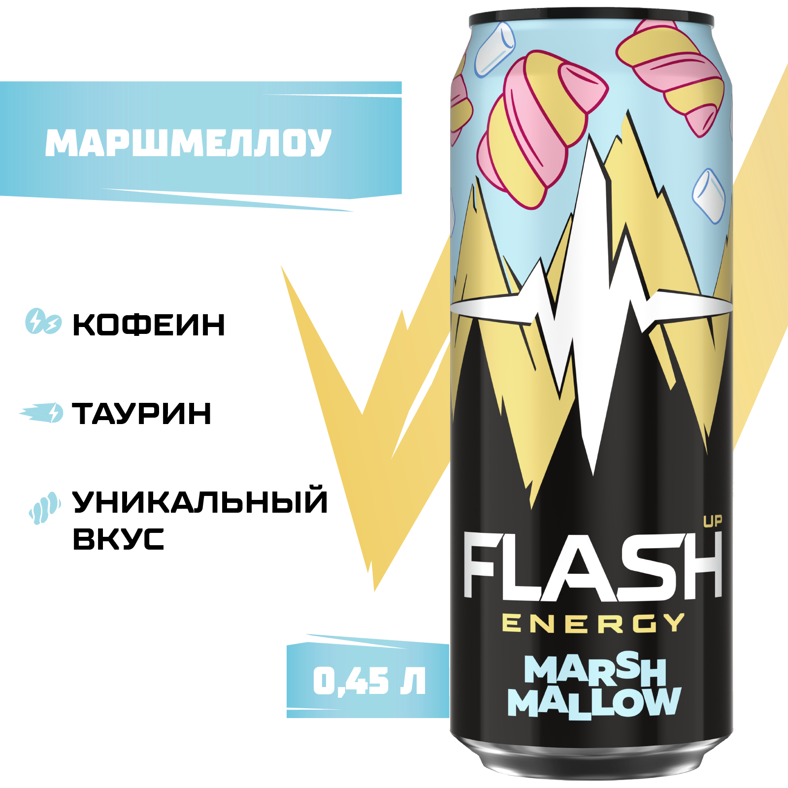 вода питьевая очищенная, сахар, регулятор кислотности лимонная кислота, концентрат для напитков «Энерджимикс» (таурин, витамин С, мальтодекстрин, кофеин, ниацин, пантотеновая кислота, витамин B6, фолиевая кислота), ароматизатор пищевой «Маршмеллоу», ароматизатор пищевой «Ваниль» (стабилизаторы: Е414, Е444, Е445), подсластители: ацесульфам калия, цикламат натрия, сахаринат натрия, консерванты: сорбат калия и бензоат натрия