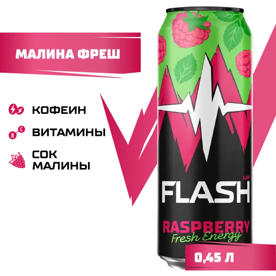 вода питьевая очищенная, сахар, регуляторы кислотности: лимонная кислота и цитрат натрия, концентрат для напитков «Энерджимикс» (таурин, витамин С, мальтодекстрин, кофеин, ниацин, пантотеновая кислота, витамин B6, фолиевая кислота), ароматизатор пищевой натуральный «тип Малина», ароматизатор пищевой натуральный «тип Ревень» (регулятор кислотности уксусная кислота), ароматизатор пищевой «Ваниль» (стабилизаторы: Е414, Е444, Е445), сок черной моркови концентрированный, подсластители: ацесульфам калия, сахаринат натрия, цикламат натрия, краситель Е120, консерванты: сорбат калия и бензоат натрия, сок концентрированный из малины