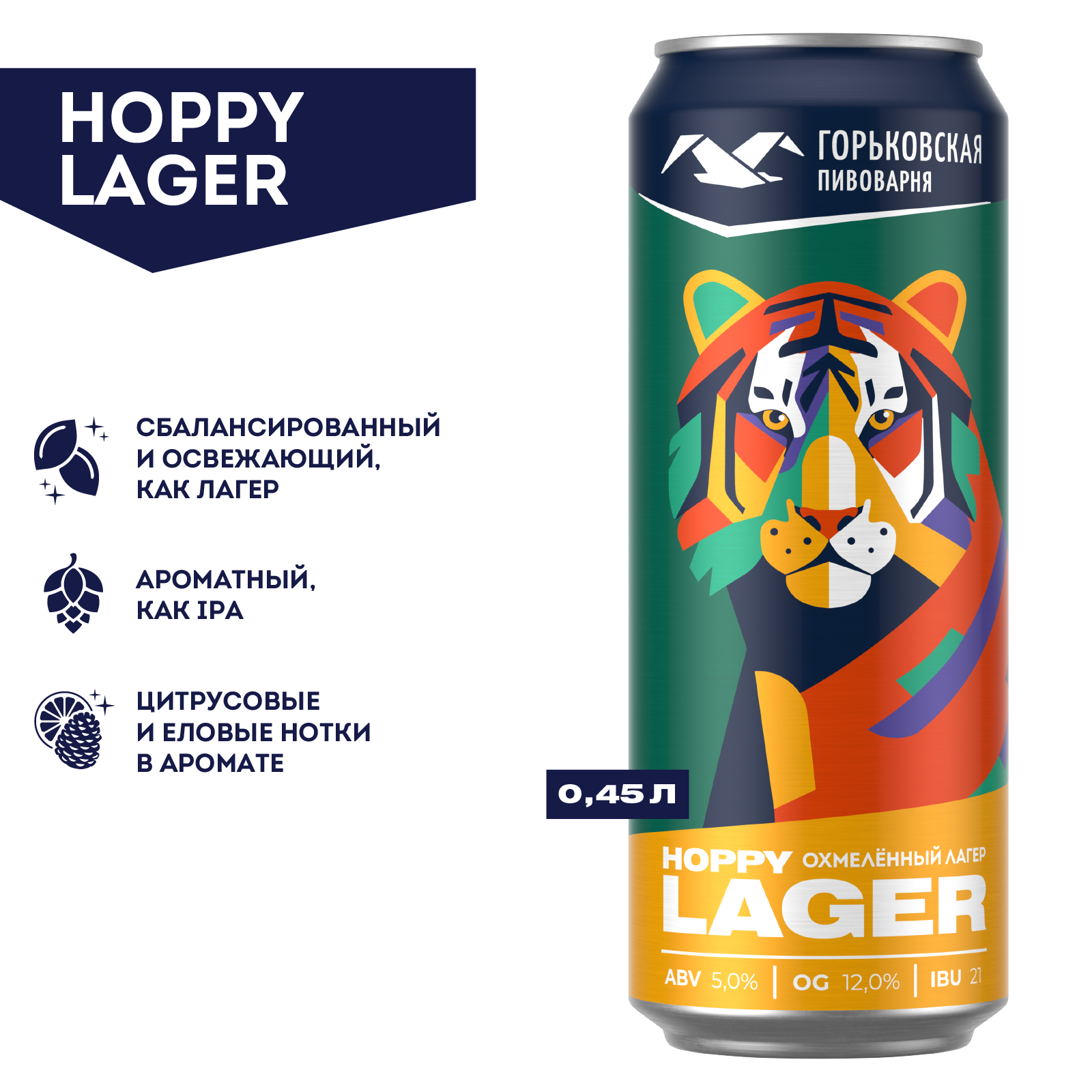 Горьковская Пивоварня Hoppy Lager Банка 0,45