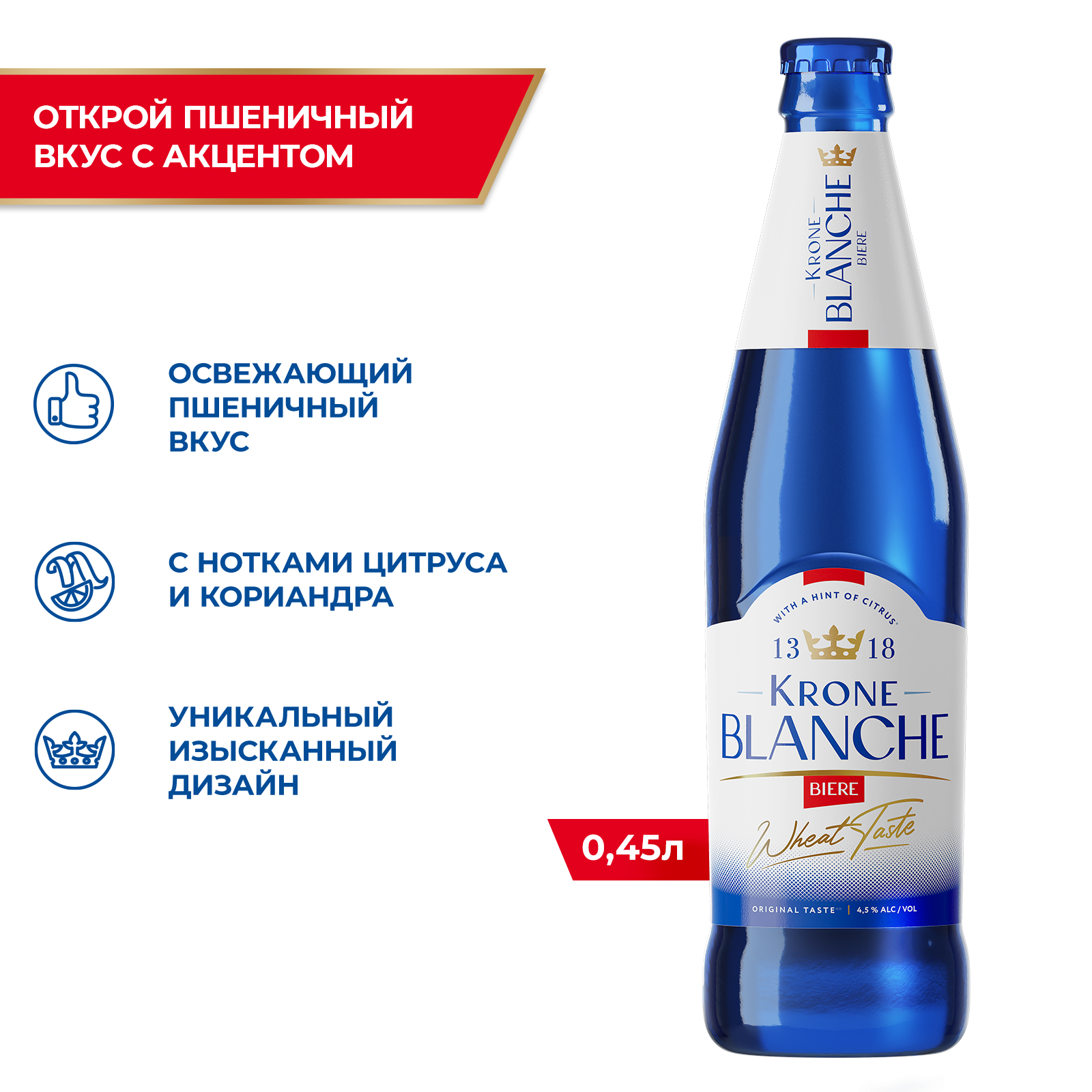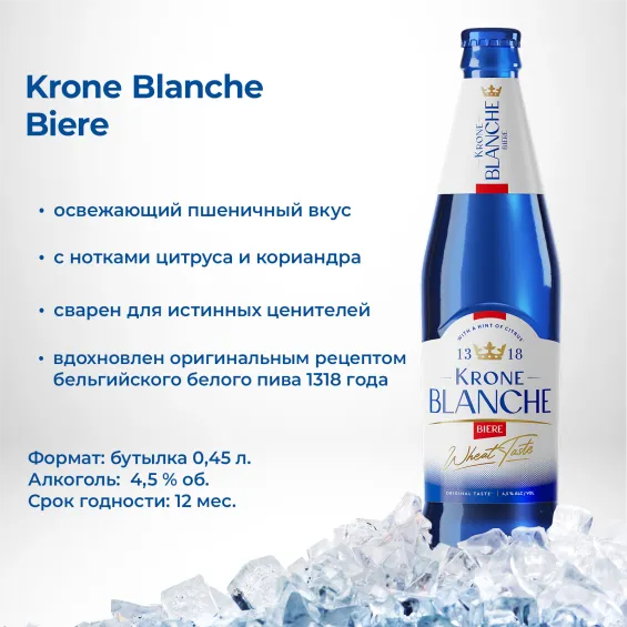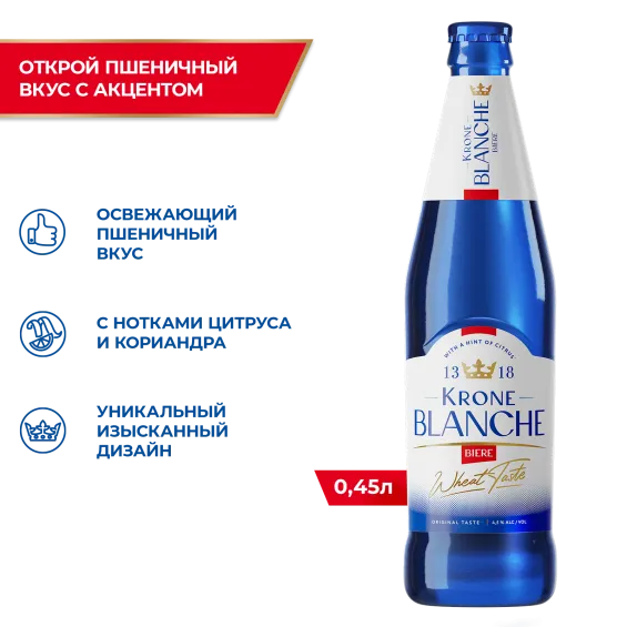 "Krone Blanche Biere Бутылка 0,45 л – Освежающее пиво в стиле Blanche! Krone Blanche Biere — это