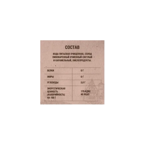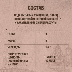 Вода питьевая очищенная, солод ячменный светлый и карамельный, хмелепродукты.