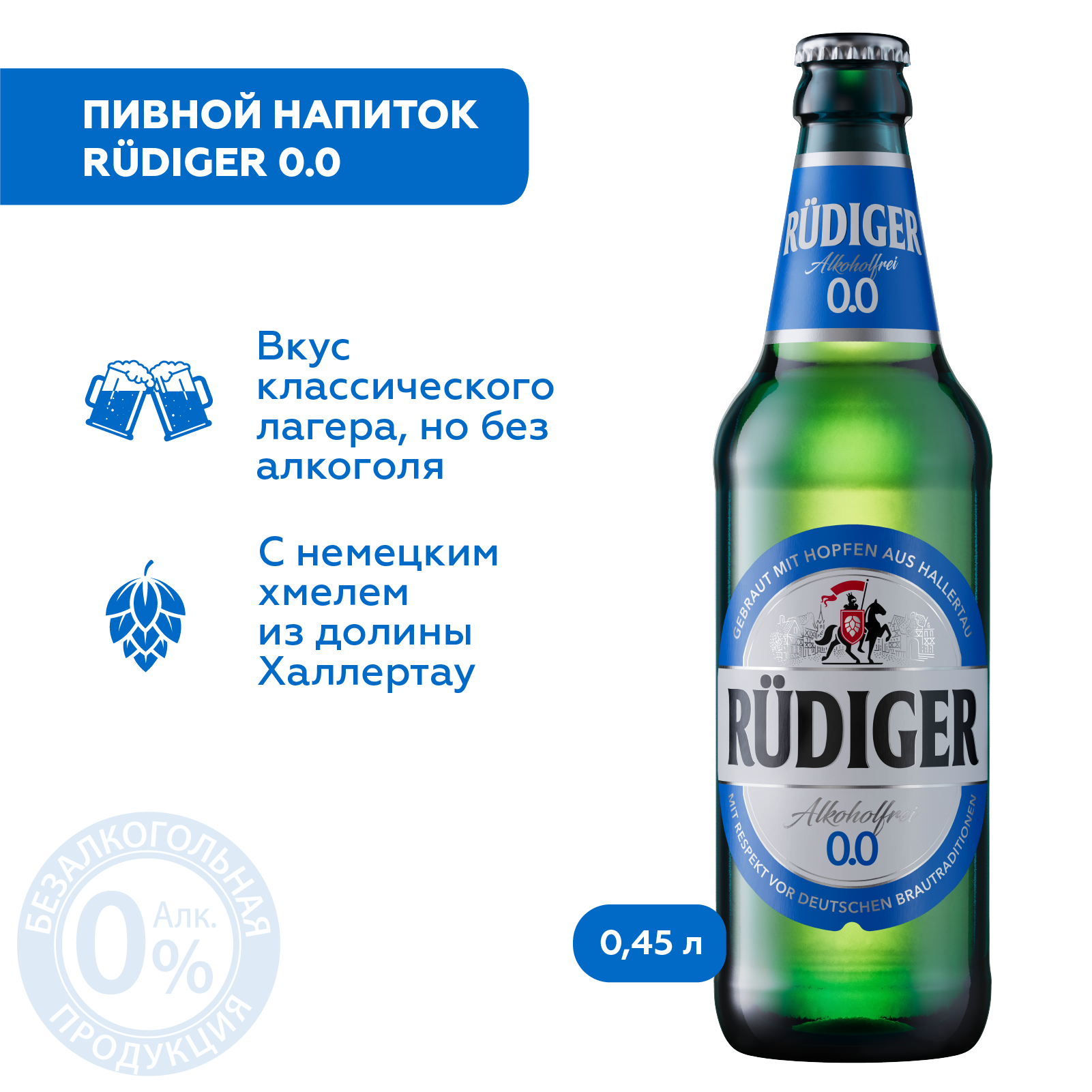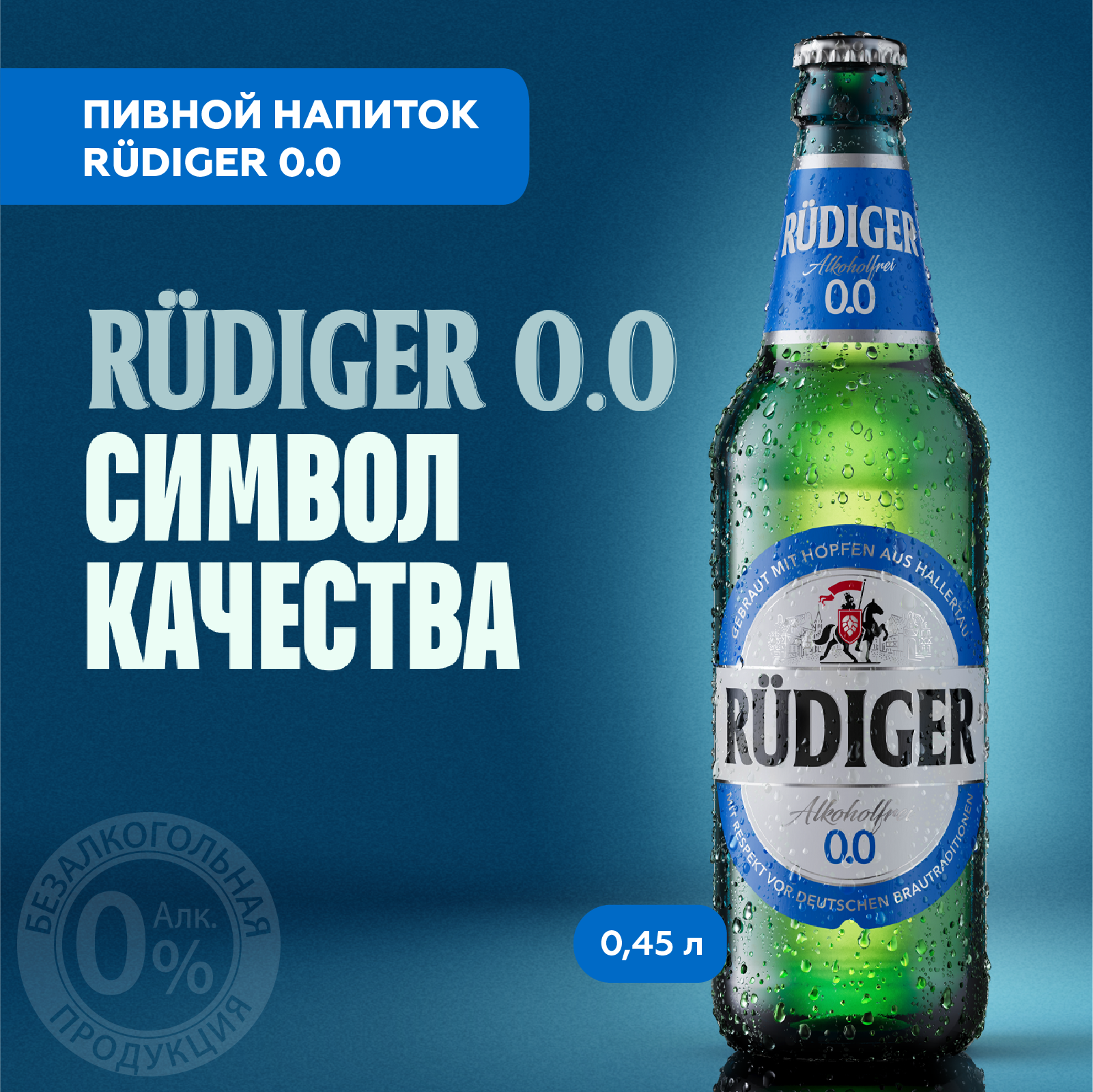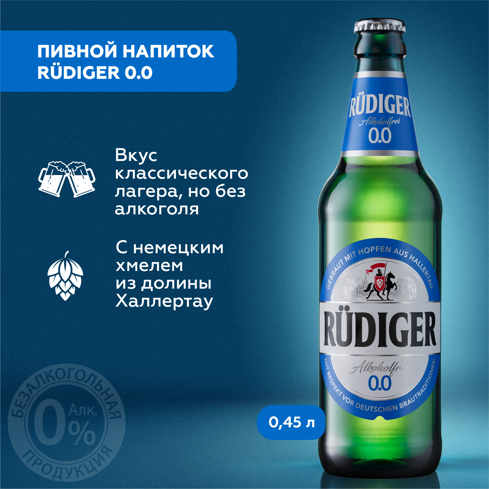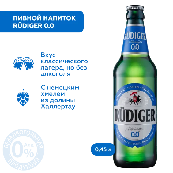 "Rudiger 0.0 Non-alcoholic Бутылка 0,45 л – пиво без алкоголя с насыщенным вкусом! Rudiger 0.0